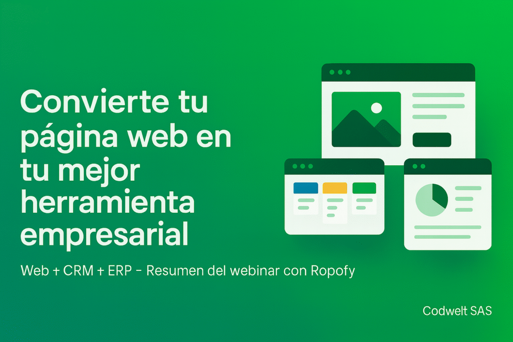 En este webinar —organizado por Ropofy— compartimos el enfoque que usamos en Codwelt para que una página web pase de ser “solo una vitrina” a convertirse en un activo que atrae tráfico, capta leads y automatiza tareas. Spoiler: no se trata de “estar en internet”, sino de operar mejor con